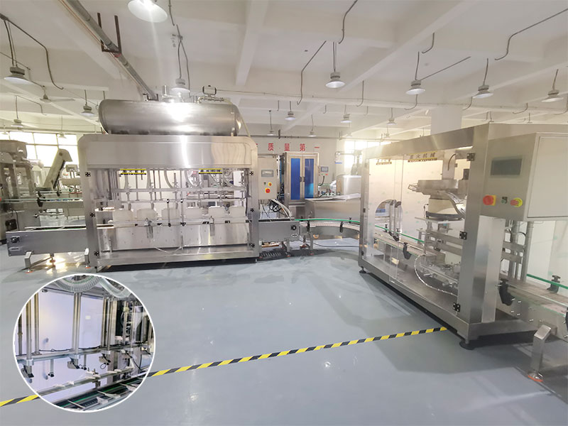 1、自動(dòng)上桶、定位,全自動(dòng)化工桶灌裝機(jī)通過(guò)滾筒線,可自動(dòng)將空的容器桶送至灌裝工位,燃油再由氣動(dòng)夾桶裝置,進(jìn)行自動(dòng)夾緊并精確定位操控。