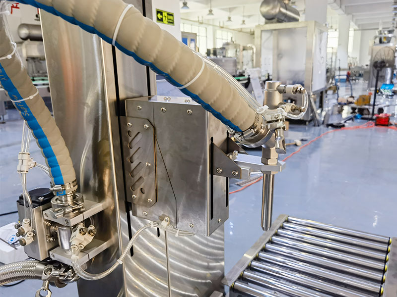 3、真空回吸防滴漏配置,在灌裝結(jié)束后,灌裝頭可自動關(guān)閉執(zhí)行真空回吸功能,防止殘液滴落,保持桶口清潔,避免腐蝕與污染。