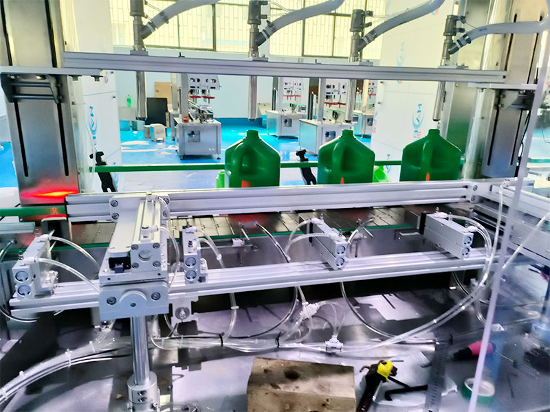 四頭化工稱重灌裝機(jī)主要針對(duì)于5-25公斤的液體物料高精度灌裝,5-25升液體灌裝機(jī)設(shè)備被廣泛用于化工、涂料、日化、食品等行業(yè),其主要核心技術(shù)在于,四頭同步灌裝技術(shù),能夠?qū)崿F(xiàn)效率與精度的雙重提升效果,內(nèi)置的PLC軟件控制系統(tǒng),可在無(wú)人化的狀態(tài)執(zhí)行灌裝運(yùn)動(dòng)提高產(chǎn)能,縮減費(fèi)用。