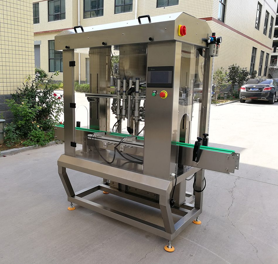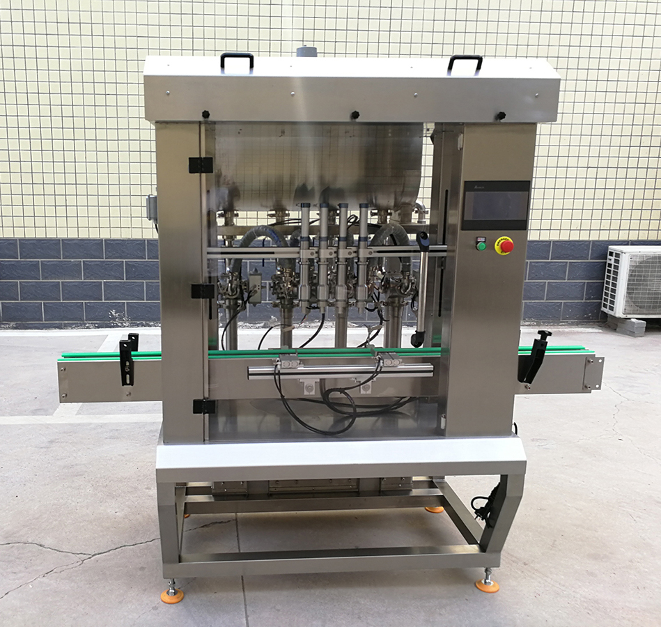 是我司新款的4頭醬料灌裝機(jī),設(shè)計(jì)新穎、外形美觀,具有界面友好,適應(yīng)性強(qiáng)、操作簡單、灌裝量準(zhǔn)確,維護(hù)方便等特點(diǎn)。設(shè)備表面和物料按觸面均采用304不銹鋼材料制造,無滴漏,無拉絲,易清洗,完全符合食品行業(yè)標(biāo)準(zhǔn)要求。