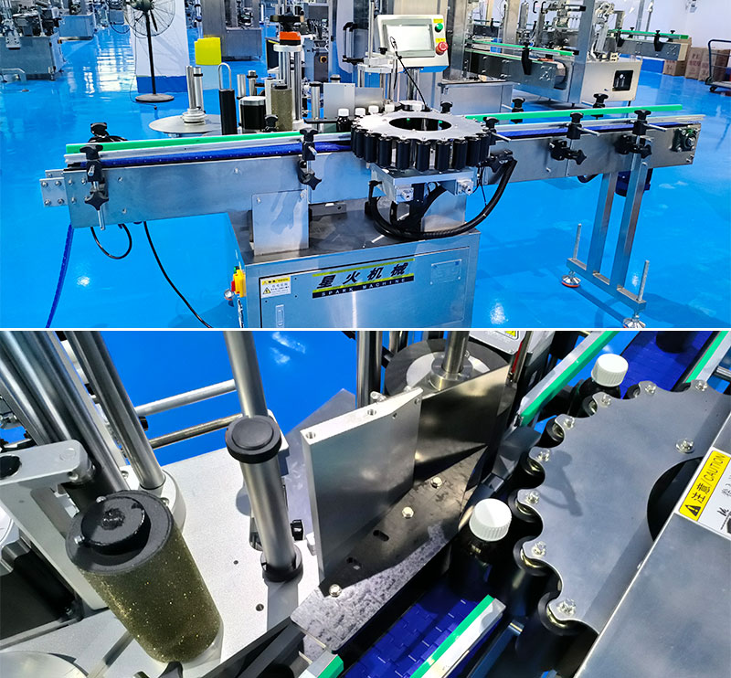 全自動星盤貼標機可通過進瓶、定位、剝標、覆標的全流程自動化作業(yè),實現(xiàn)高精度的貼標運動,當操作者做好準備之后,輸送帶將會進入分瓶裝置,星盤機構將會按固定間距間歇式輸送,確保所需貼標的物料排列,避免倒瓶,全自動星盤貼標機的光電傳感裝置在視覺方面能夠實時捕捉產(chǎn)品的位置與特征,并且將信號傳輸至PLC控制系統(tǒng),出發(fā)貼標動作,實現(xiàn)無物不貼標的智能控制,此時,全自動星盤貼標機的放卷輪承載標簽卷材并控制釋放速度,剝離機將標簽從格拉辛底紙完整分離,同時標帶繞行糾偏機構保證標簽牽引過程不左右偏移的粘貼在容器瓶上。在經(jīng)過精準貼標動作后,通過覆標機構對標簽進行壓實處理,確保標簽牢固附著牢固。