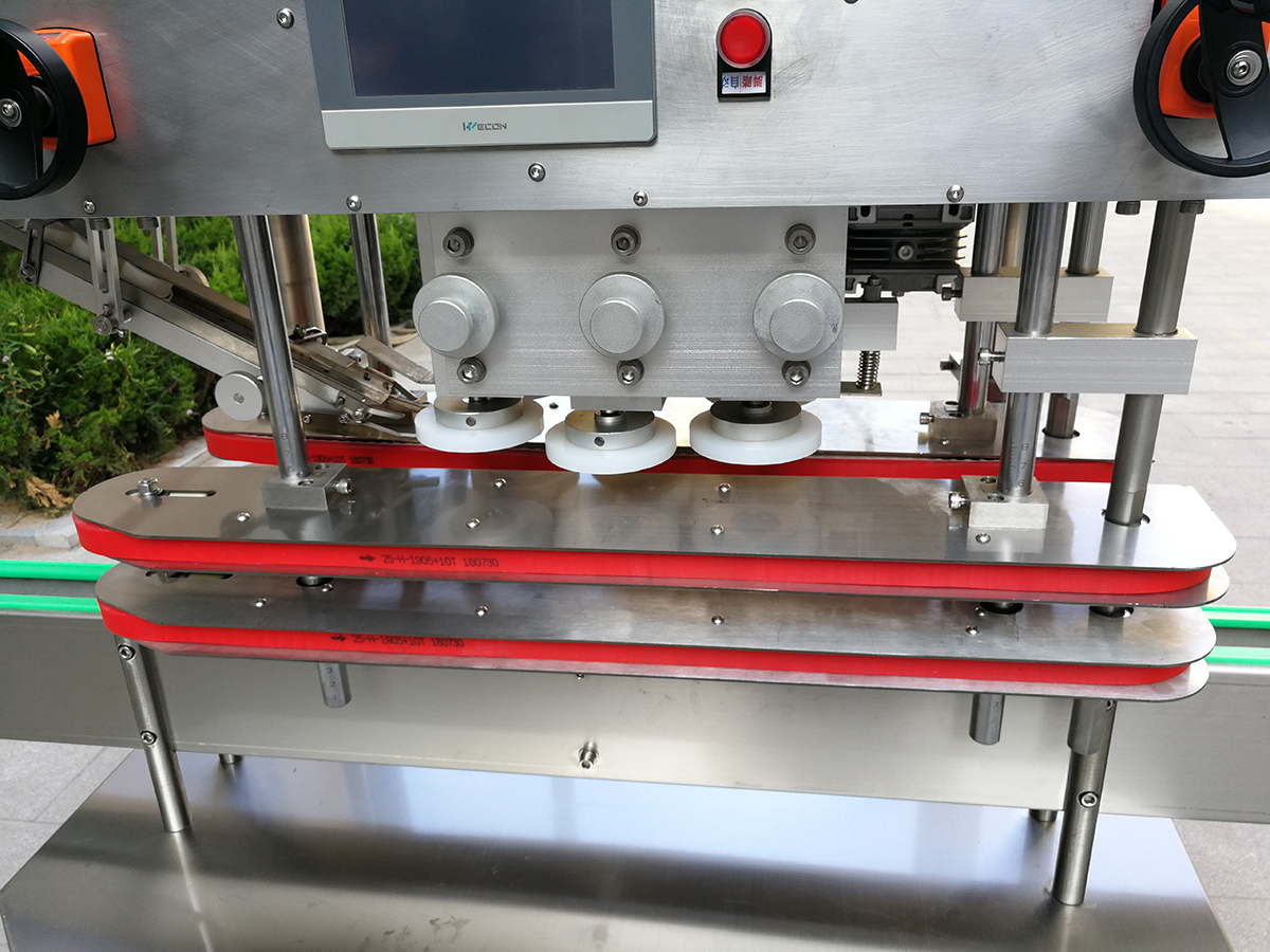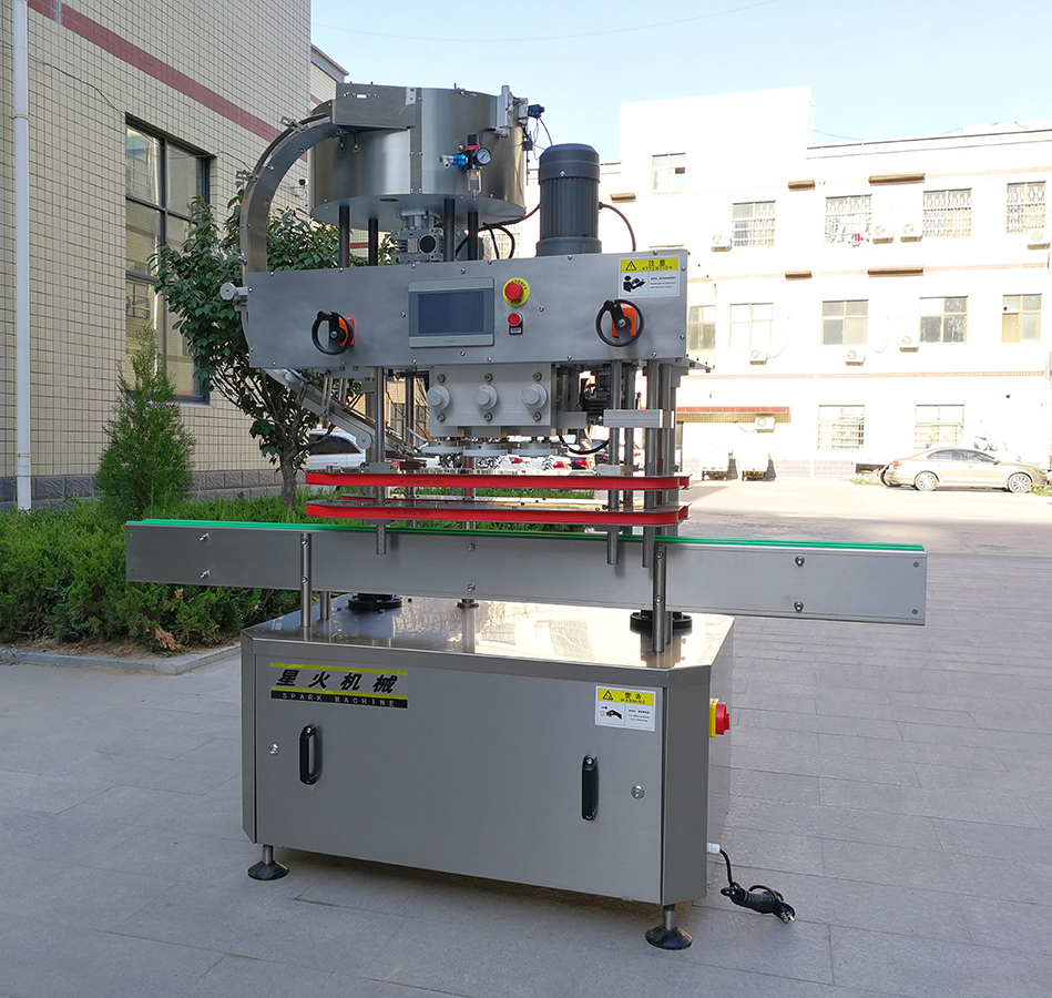 XH-160B型全自動直列式壓蓋機(jī)是我公司很新改進(jìn)的一種新型壓蓋機(jī)。四臺調(diào)速電機(jī)分別用于供蓋、夾瓶、傳送、壓蓋,機(jī)器自動化程度高,穩(wěn)定性好,調(diào)節(jié)方便、更換瓶型或蓋時無需備件,只需作調(diào)整即可完成(如配上蓋機(jī),可進(jìn)行自動上蓋)。外觀美觀大方、靈巧、壓蓋速度快,合格率高,可適用于食品、醫(yī)用、化工、飲料等行業(yè)的不同瓶形的旋蓋。